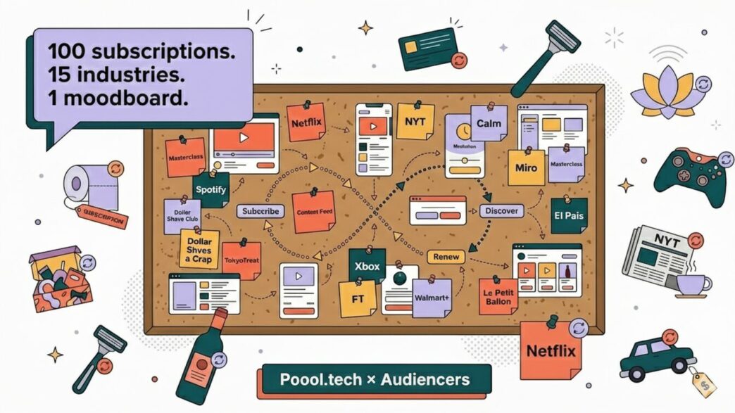 We (at Poool – an awesome customer journey builder for publishers) wanted to build a “subscription moodboard”. Not a strategy, not a benchmark report. A moodboard. Like designers do when they start a project – they look at everything that exists, take screenshots, and see what patterns emerge.