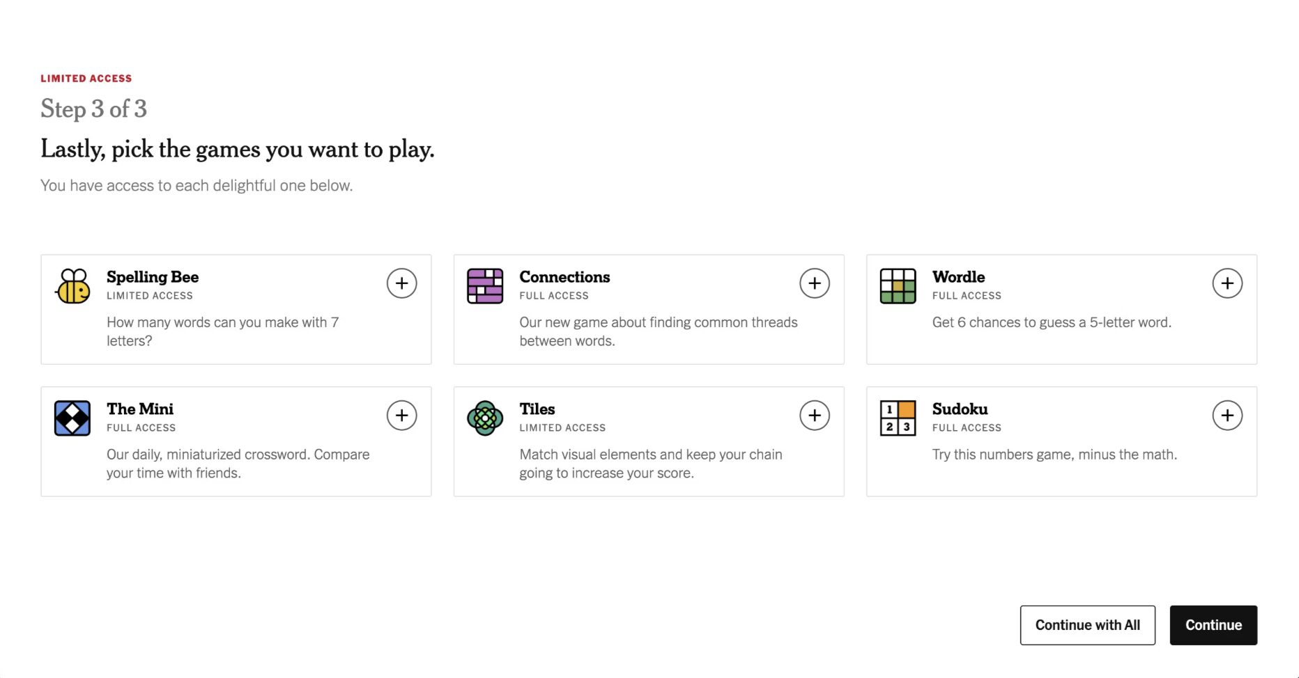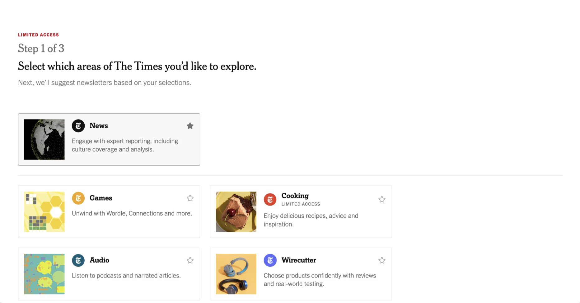 During registration, they ask which areas of The Times you want to explore. They recommend newsletters based on your selections. They let you pick games. They prompt you to download the app.