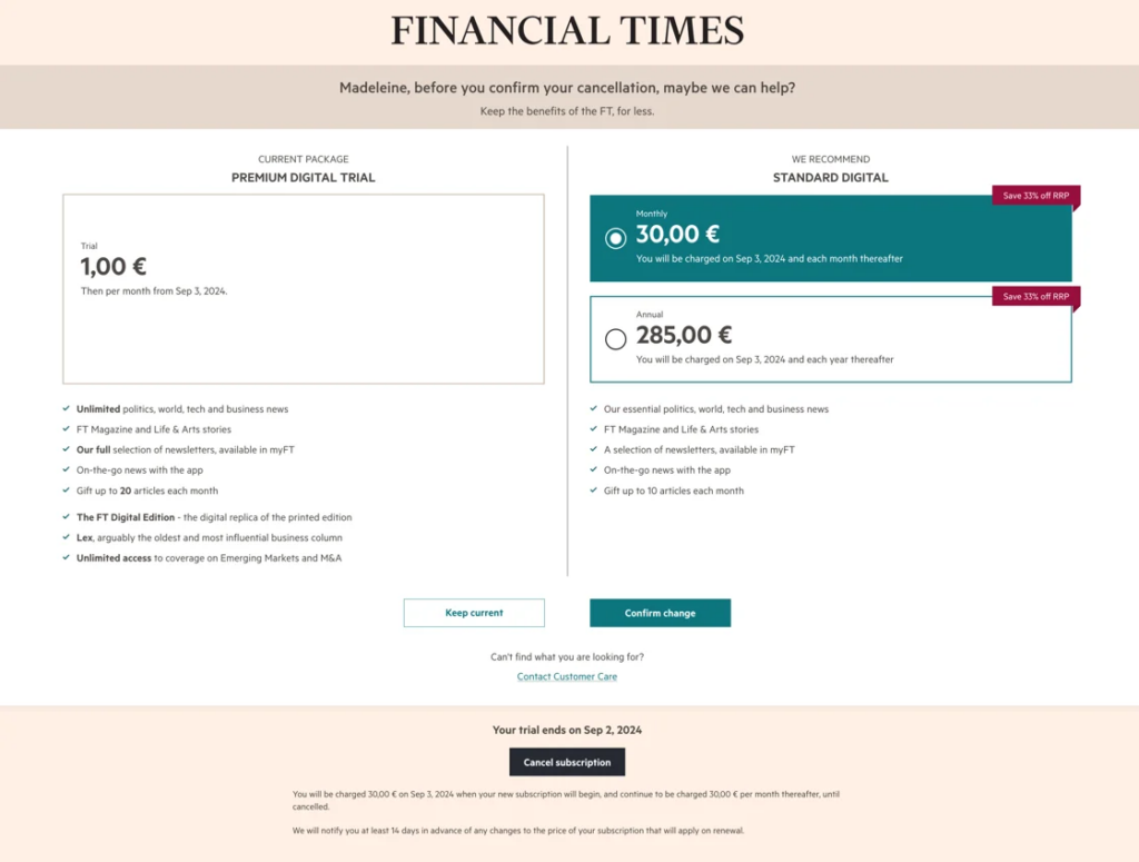 - FT improves the UX of their cancellation journey: see the before and after