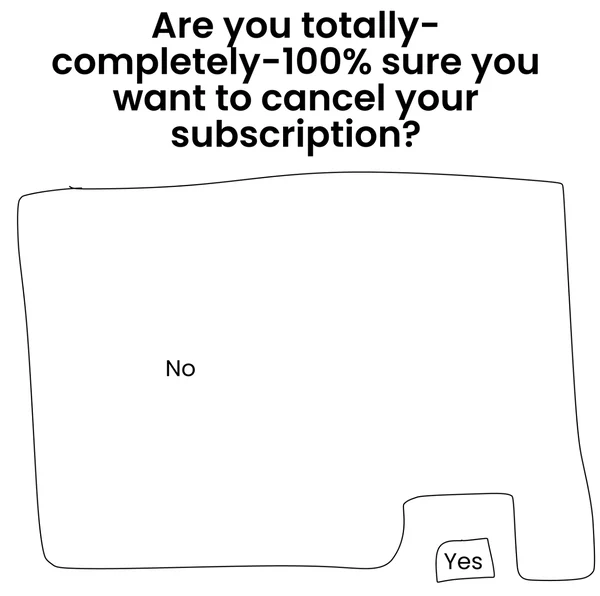 “Hide the cancel button, make it hard to click on, put it below the fold”