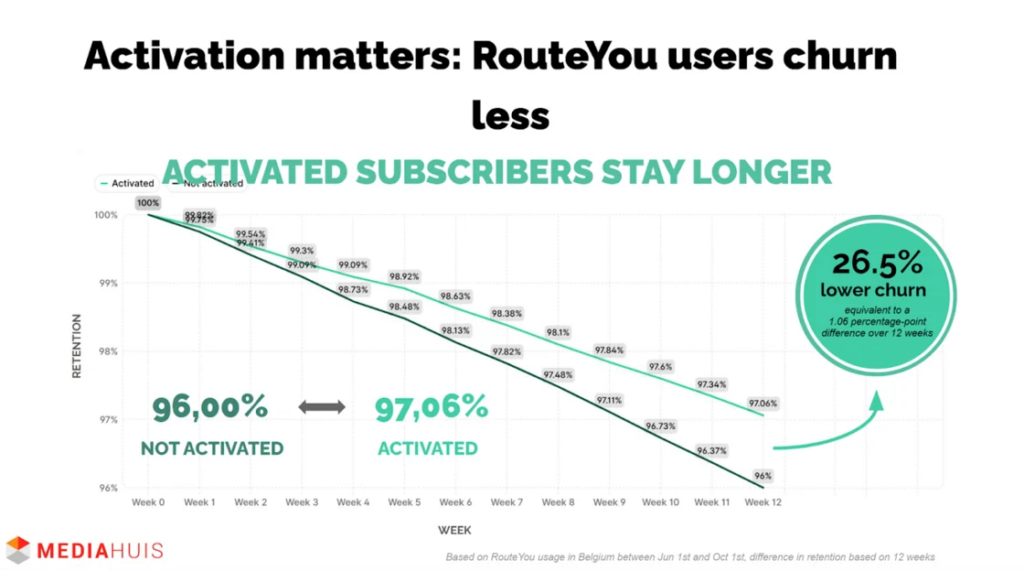 -> This focus on usability pays off. Subscribers who activated RouteYou show 26.5% lower churn.