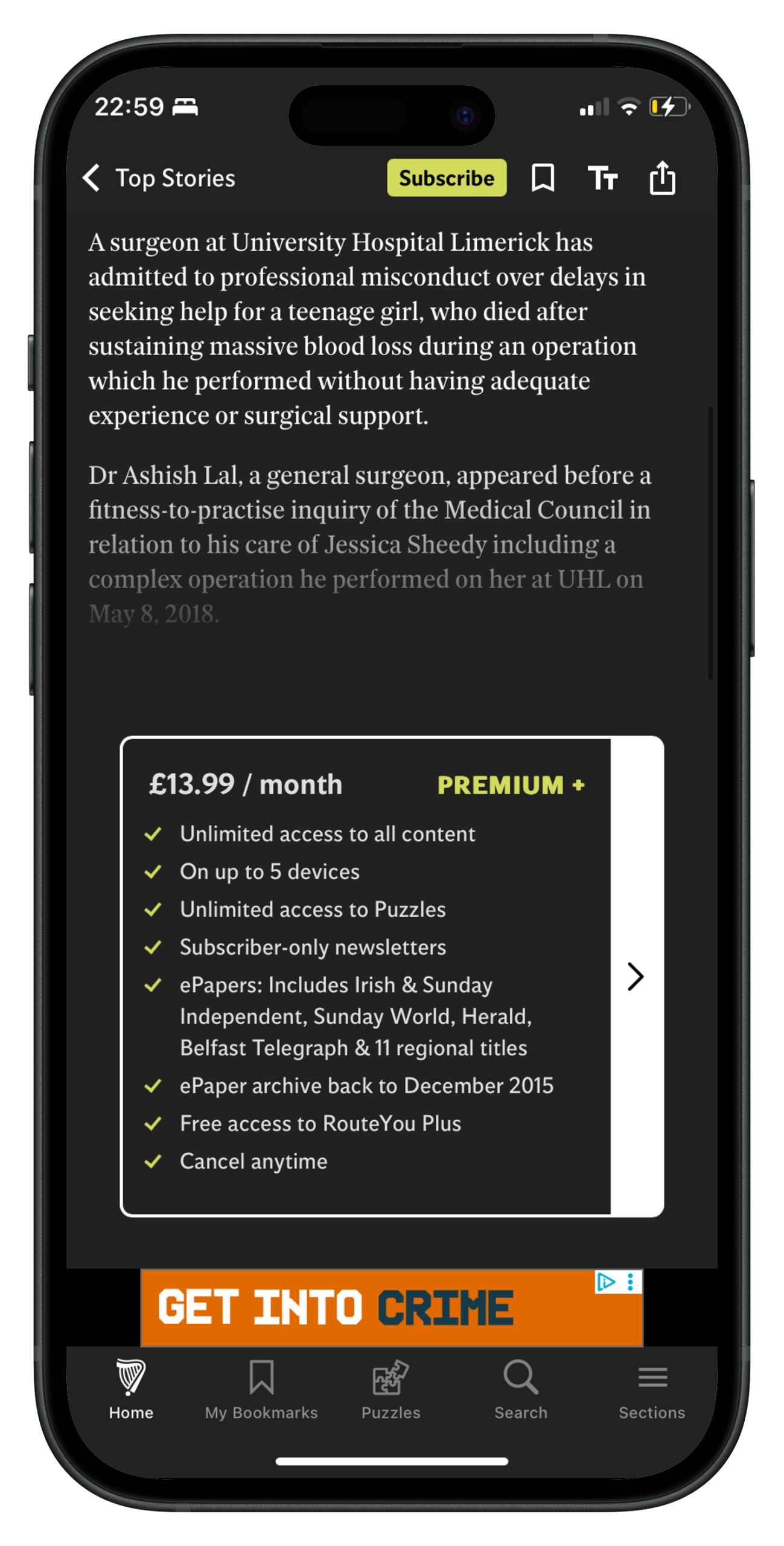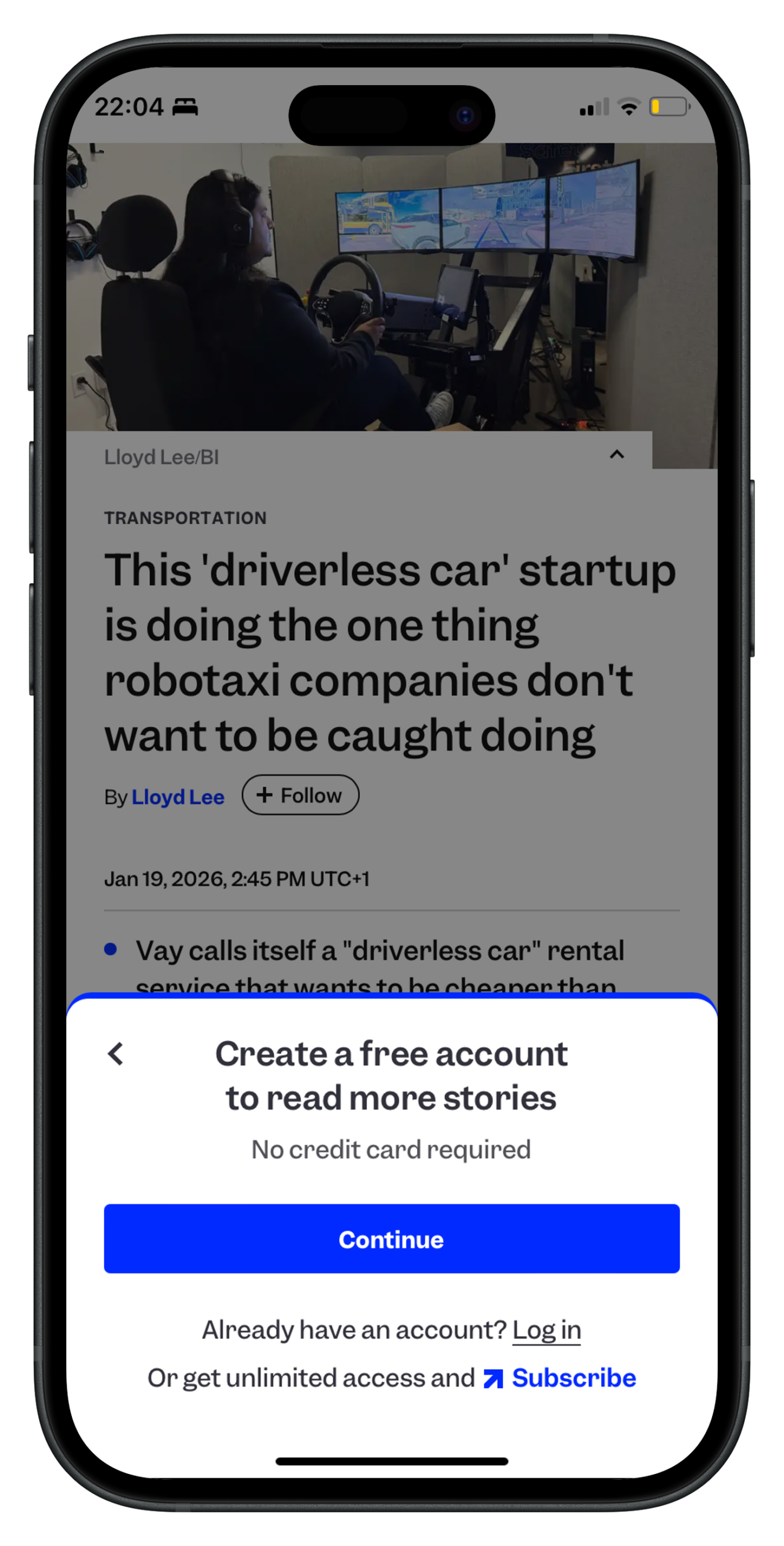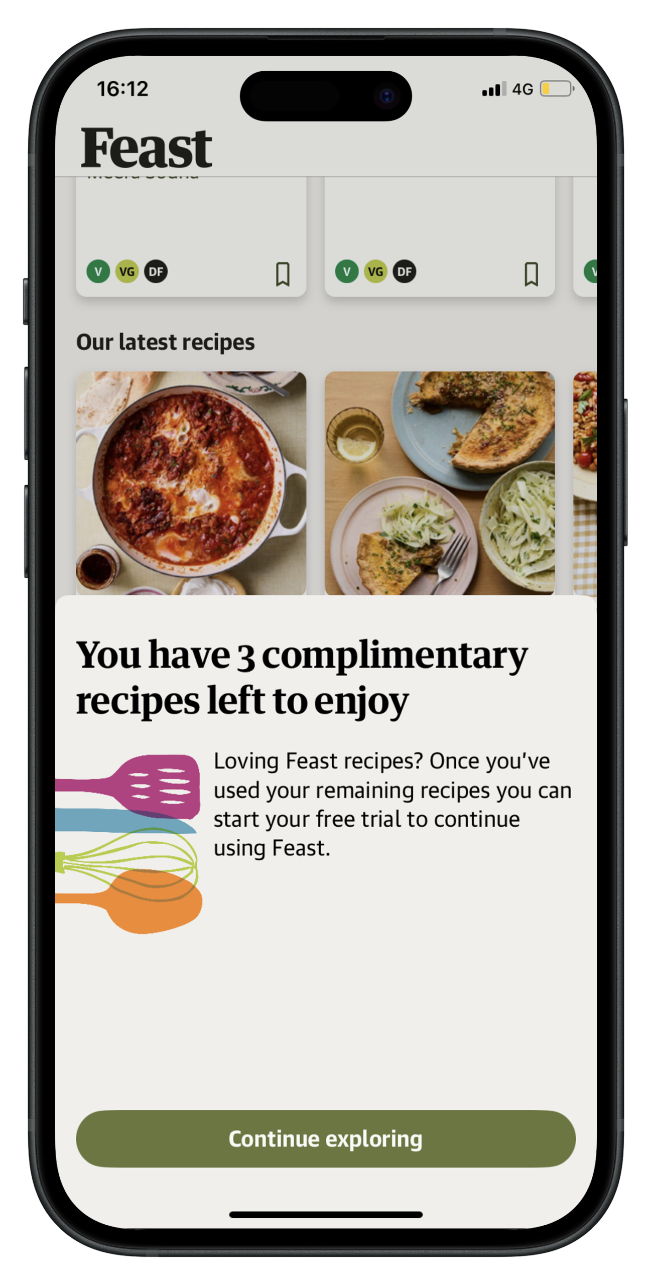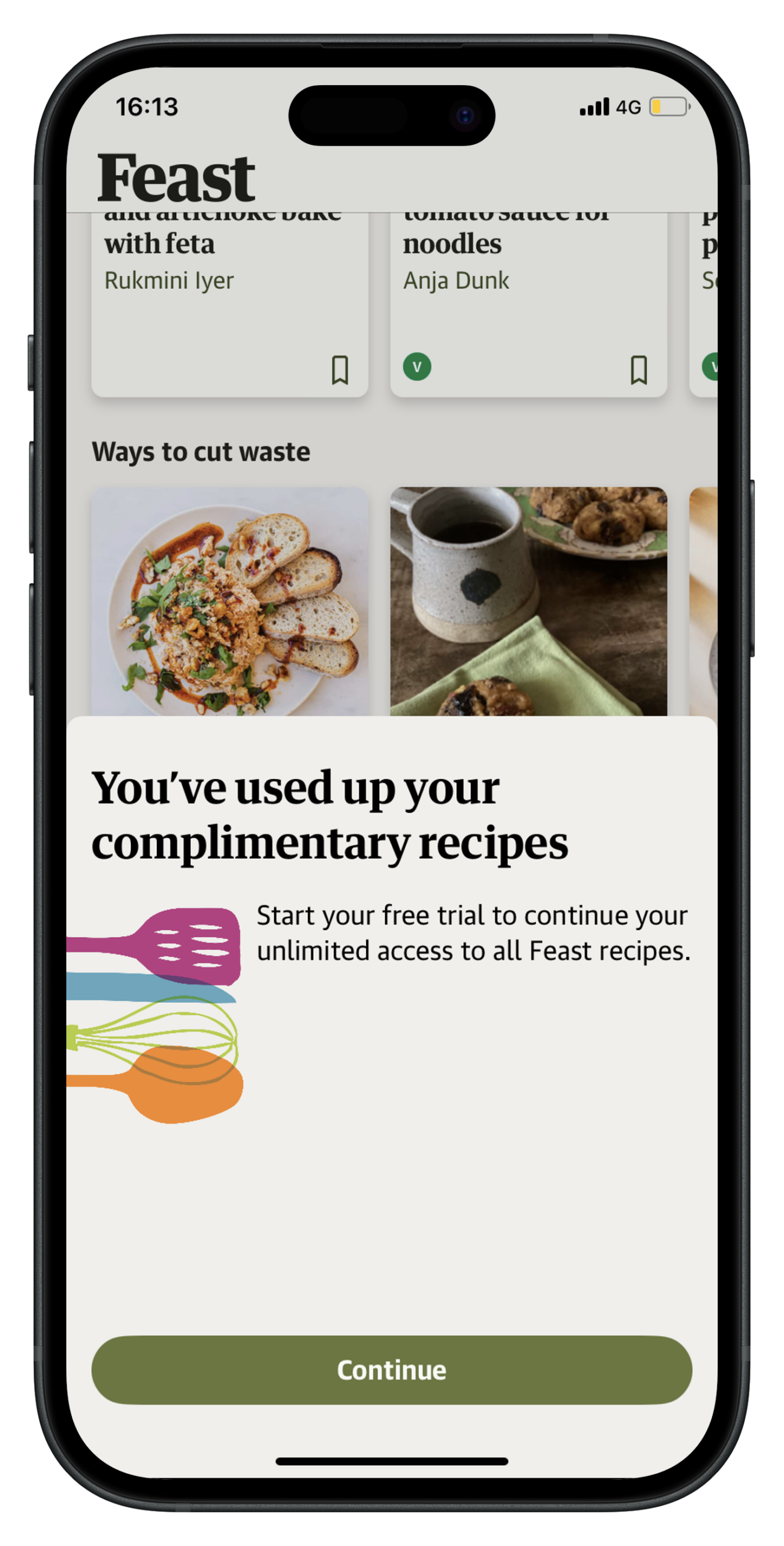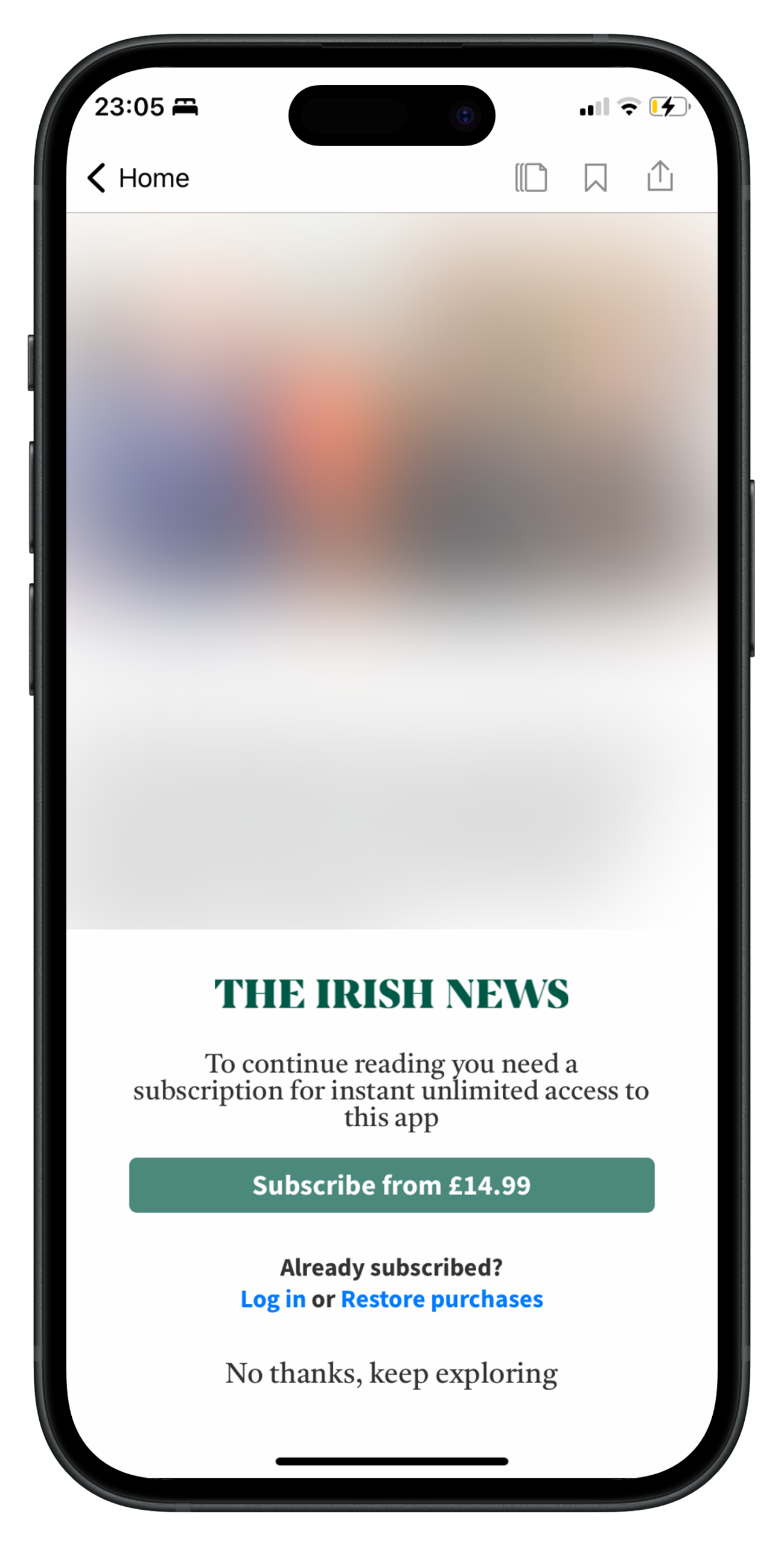 A registration wall model is a great idea here – you can de-anonymize your reader, collecting key data points, as well as onboard them to the app, encourage them to activate notification, sign up to your newsletter and personalize their feed in order to increase engagement.