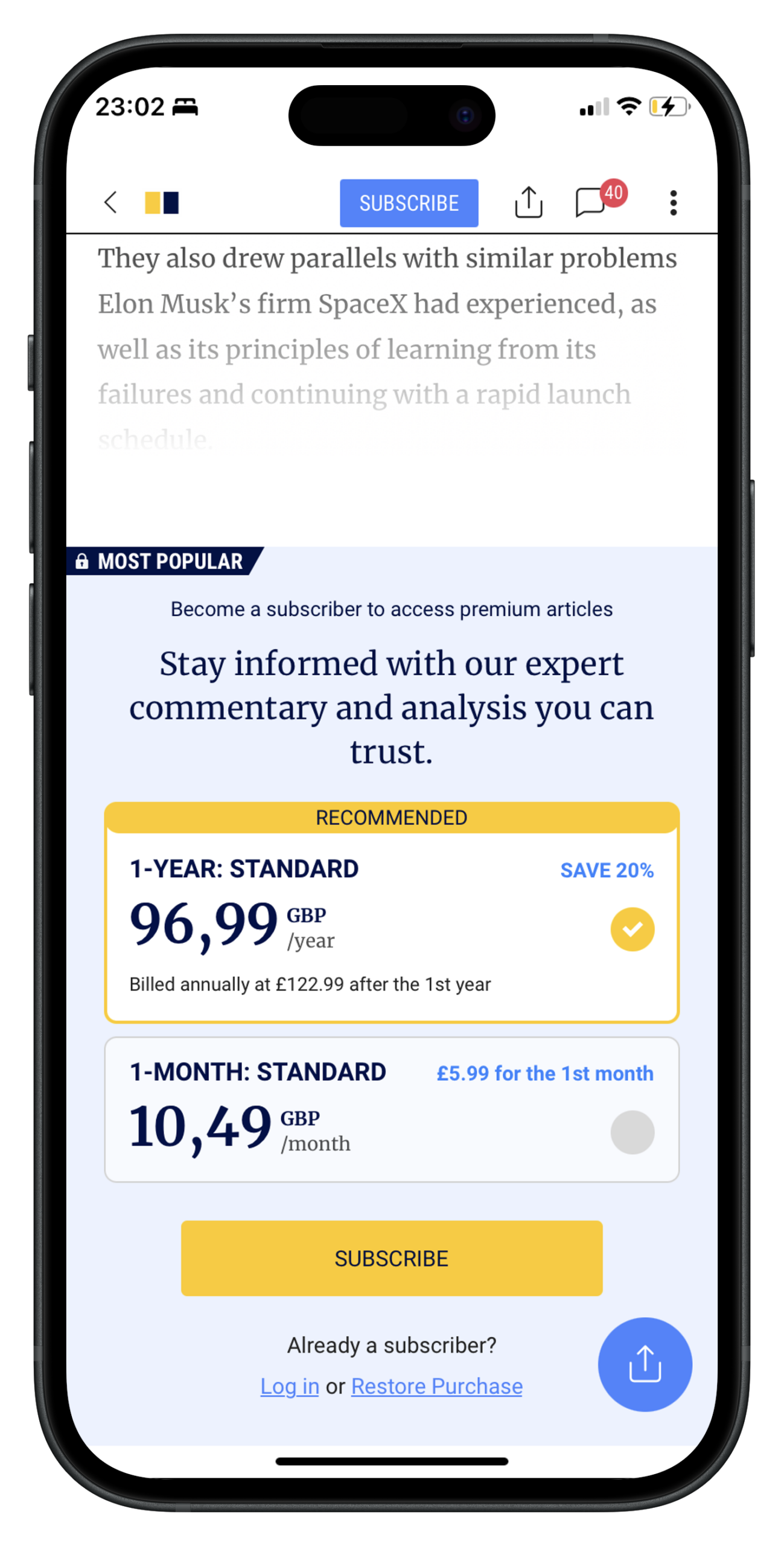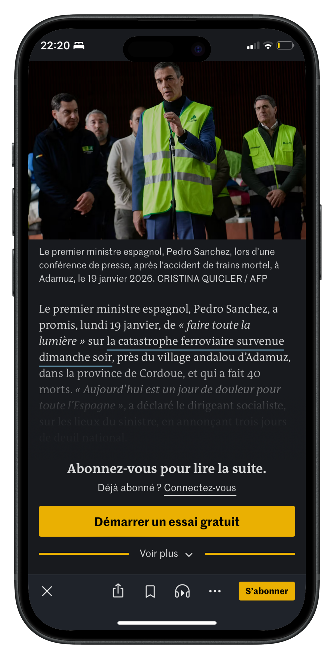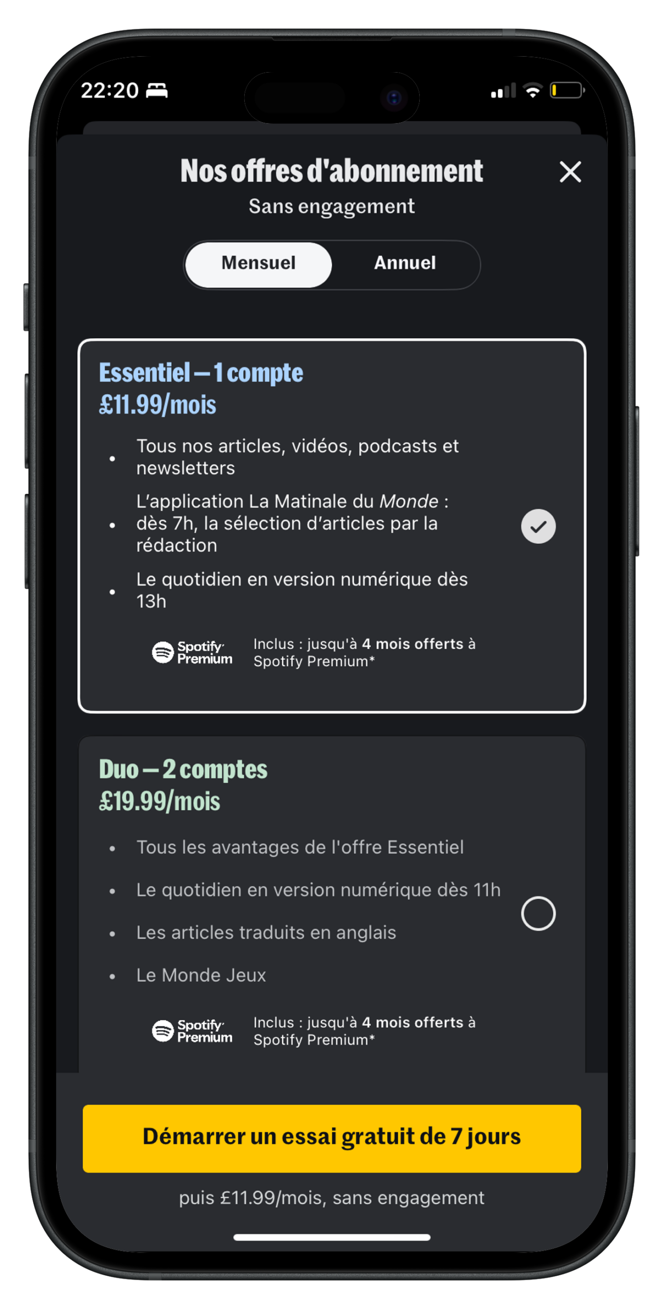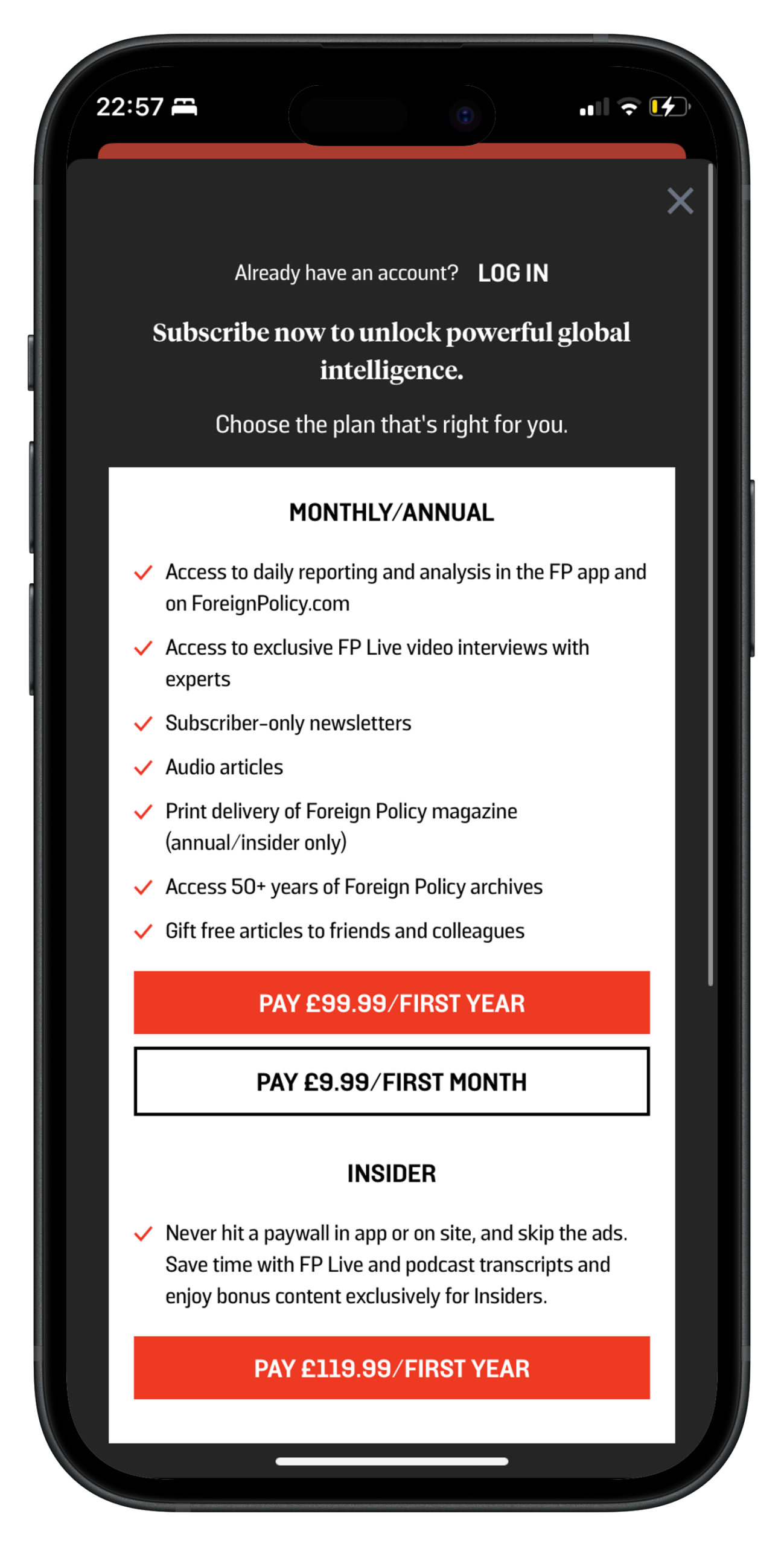 There’s a variety of reasons for this – likely linked to the context of reading content on mobiles – but a paywall that isn’t adapted to the smaller screen and device-type certainly has a part to play. Hence why our latest benchmark shares examples and best practices of paywalls on apps!