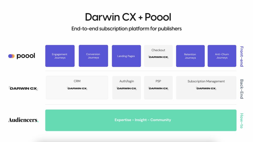 Poool, the leading dynamic journey builder (owner of Audiencers), is proud to announce that we have signed a definitive agreement with Darwin CX to provide publishers with a unified, end-to-end subscription platform for media companies.