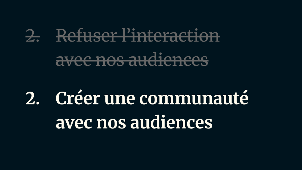 Le refus d’interagir nous maintient dans une relation fragile avec une audience volatile tout en nous privant du feedback essentiel pour améliorer le product-market-fit de nos médias.