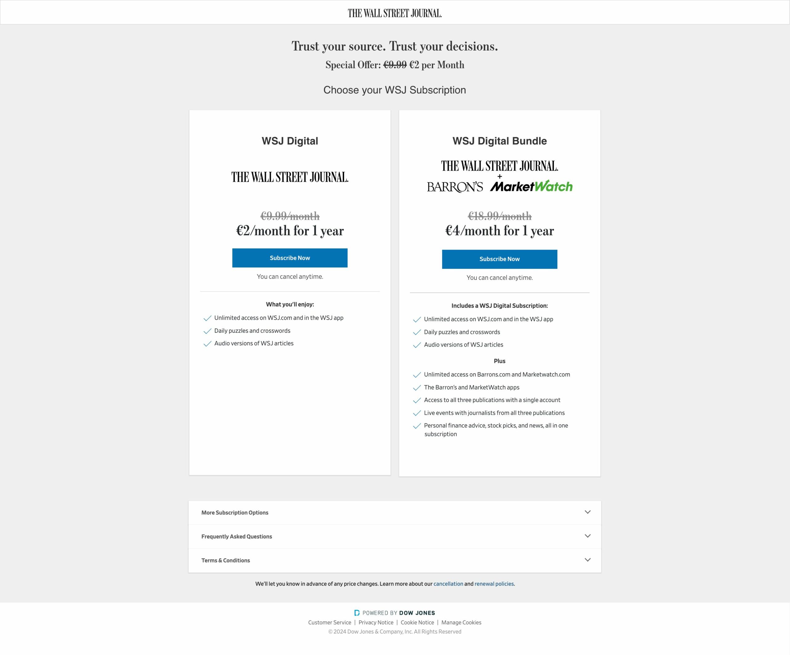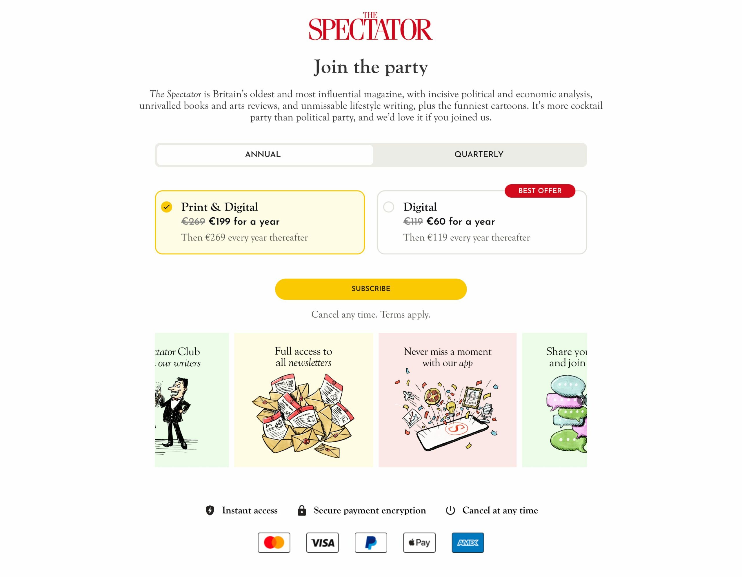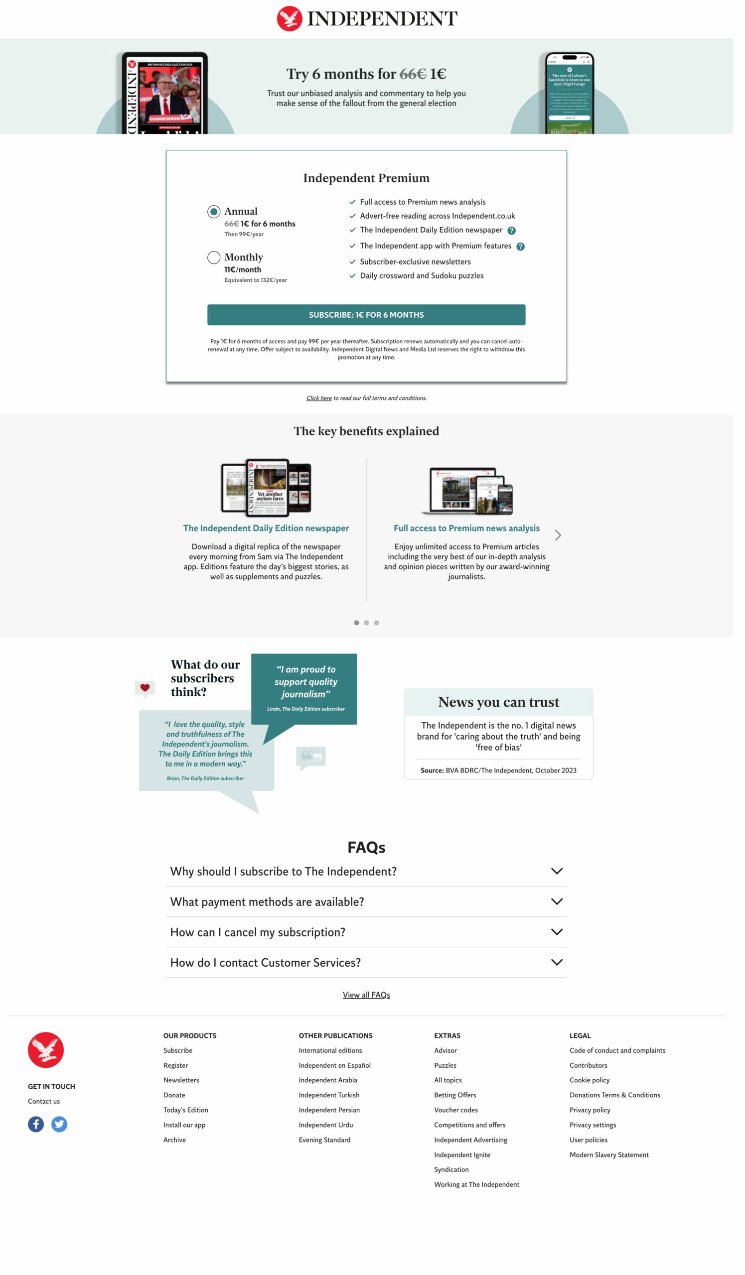 Your subscriptions offers page is a convincer moment – it’s there to sell your product, show its value, and encourage a reader to click through and subscribe.